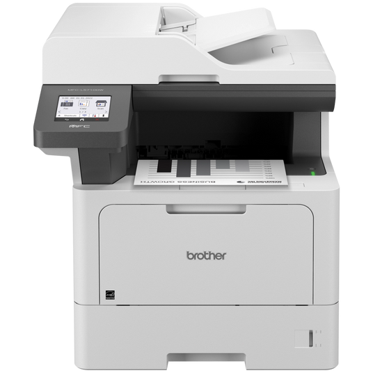 The Brother MFC-L5710DW business monochrome laser all-in-one printer is a great choice for busy offices and small workgroups that need cost-efficient printing, versatile paper handling, expandable paper capacity, advanced security features, and reliable output. It helps to increase productivity with fast print and copy speeds up to 48 ppm and delivers cost-efficient printing by using Brother Genuine TN920XXL