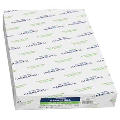 Hammermill Colour Copy Digital 12" x 18" Paper, 28 lb. 12" x 18".28 lb..Carton of 4 packages. FSC Certified.Acid free.Ideal for premium colour copies, proposals, presentations and photographic reproduction.Extra smooth surface for perfect toner blending and registration.100 brightness.99.99% jam-free.White.Package of 500 sheets.