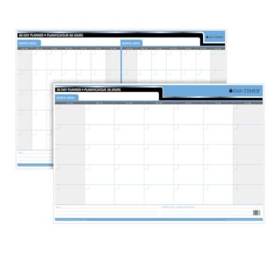 Day-Timer Flexible 30-Day/60-Day Undated Dry-Erase Calendar, 36" x 24", Bilingual 36" x 24", bilingual, laminated undated reversible 30-day or 60-day dry-erase calendar/planner.Lightweight and easy-to-use; can be mounted to any surface and used again and again.