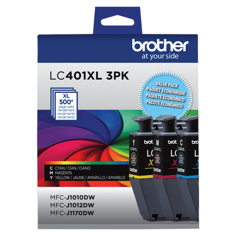 In stock (87 units)$249.99Unit price /UnavailableBrother Genuine LC401XL3PKS High-Yield Colour Ink Cartridge 3-Pack