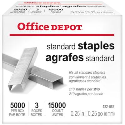 Office Depot® Standard Staples, 1/4", Box of 5,000, Pack of 5 Boxes*